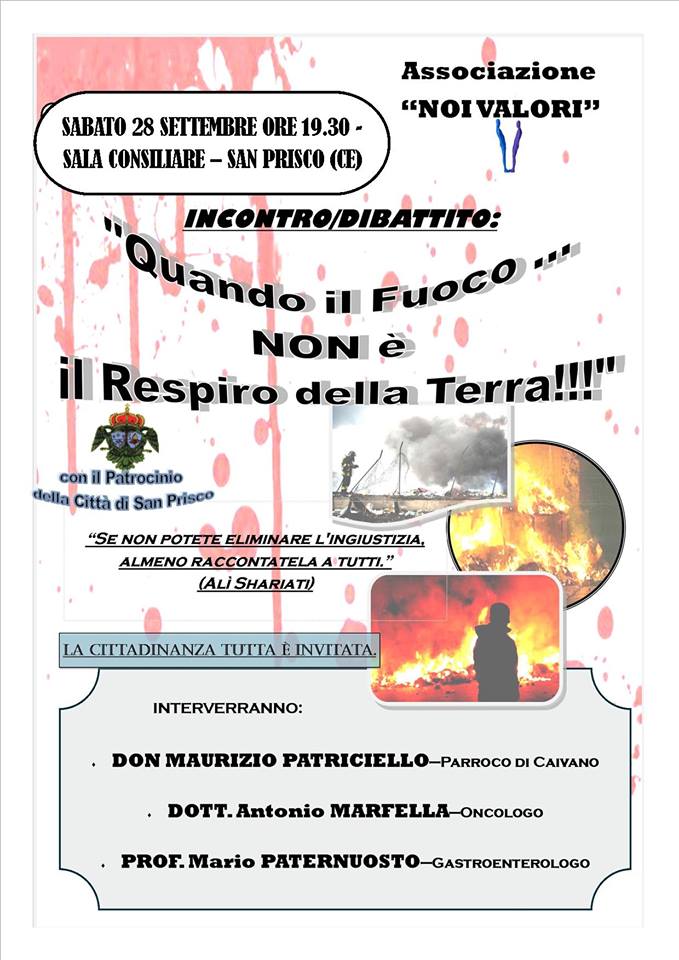 L’Associazione “NOI VALORI” organizza il giorno sabato 28 settembre 2013 alle ore 16.30 presso la sala consiliare un incontro-dibattito dal titolo “Quando il Fuoco …NON è il Respiro della Terra”