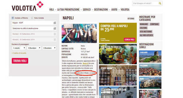 La compagnia aerea spagnola low cost Volotea ha eletto Napoli come una delle mete preferite per le sue tratte, con un flusso di passeggeri verso la città partenopea in costante aumento. La città di Napoli, di conseguenza, ha acquistato una certa attenzione da parte della compagnia, che ha pensato bene di dedicare, sul proprio sito, una recensione al capoluogo campano che, al di là delle buone intenzioni, si è fatta notare da molti internauti per una consiglio molto discutibile, ovvero quello di lasciare il Rolex a casa. Una caduta di stile che non è passata inosservata, generando le decise proteste di tanti partenopei; la recensione, in realtà, nelle intenzioni doveva elogiare alcune caratteristiche del capoluogo partenopeo note nel mondo, difatti la pagina incriminata parla di “Storia tumultuosa, persone appassionate e il cibo migliore del mondo …Napoli ha una brutta reputazione per la criminalità e la spazzatura non raccolta ma resta una delle città più eccitanti e artisticamente ricche del mondo. Lasciate il Rolex a casa e immergetevi in una città viva con arte, musica, cibo squisito”. La considerazione è figlia dei molti luoghi comuni che stigmatizzano oltremisura una città stupenda, e mai come in questo caso calza a pennello un vecchio proverbio napoletano: “male a chi porta a mala nummenata”.