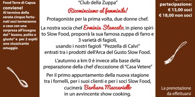ARRIVA IL PRIMO INCONTRO DโAUTUNNO DEL CLUB DELLA ZUPPA CON SLOW FOOD TERRE DI CAPUA