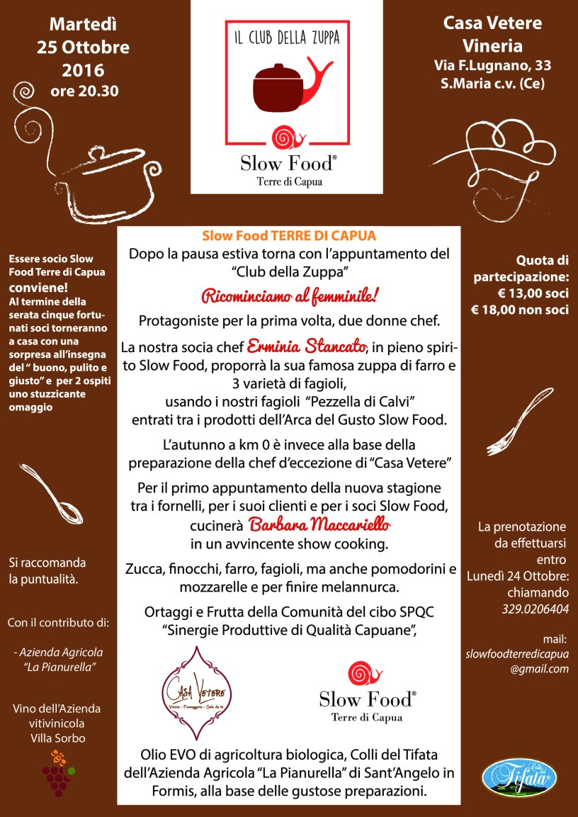 Dopo la pausa estiva torna l’appuntamento del Club della Zuppa di Slow Food Terre di Capua.