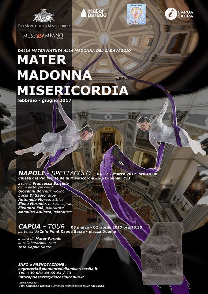 Prosegue l’evento “Mater, Madonna, Misericordia” partito lo scorso dicembre 2016, con eventi programmati fino al prossimo giugno 2017. Il Pio Monte della Misericordia a Napoli, ha creato un’occasione speciale, ospitando nella sua chiesa una Mater Matuta proveniente dalla collezione del Museo Campano di Capua, dando vita ad un dialogo ideale con la Madonna raffigurata nell’opera del Caravaggio “Le Sette Opere di Misericordia”. Attraverso le sinergie create fra le due città l’iniziativa vuole anche portare l’attenzione dei visitatori sull’importante Museo Campano di Capua e sulla sua collezione, unica al mondo per quantità di reperti provenienti da una sola area sacra, il fondo Patturelli di Curti. Dopo il discreto afflusso delle prime giornate ci sono ancora due visite guidate programmate a breve per Napoli il 25 Marzo e a Capua il 2 Aprile.I biglietti sono disponibili a Capua presso l’info Point della cattedrale, con un unico biglietto è possibile partecipare ad tutte e due le giornate. L’evento è stato reso possibile grazie alla collaborazione e alla disponibilità del Pio Monte della Misericordia e dell’ Info Point Capua Sacra.