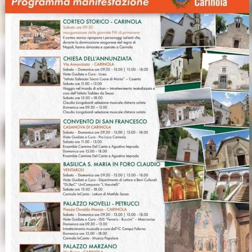 In occasione delle imminenti giornata del FAI, il 23 e il 24 Marzo, nel novero del territorio casertano, spicca l’interessante programma offerto dal comune di Carinola che propone una due giorni ricca di attività.