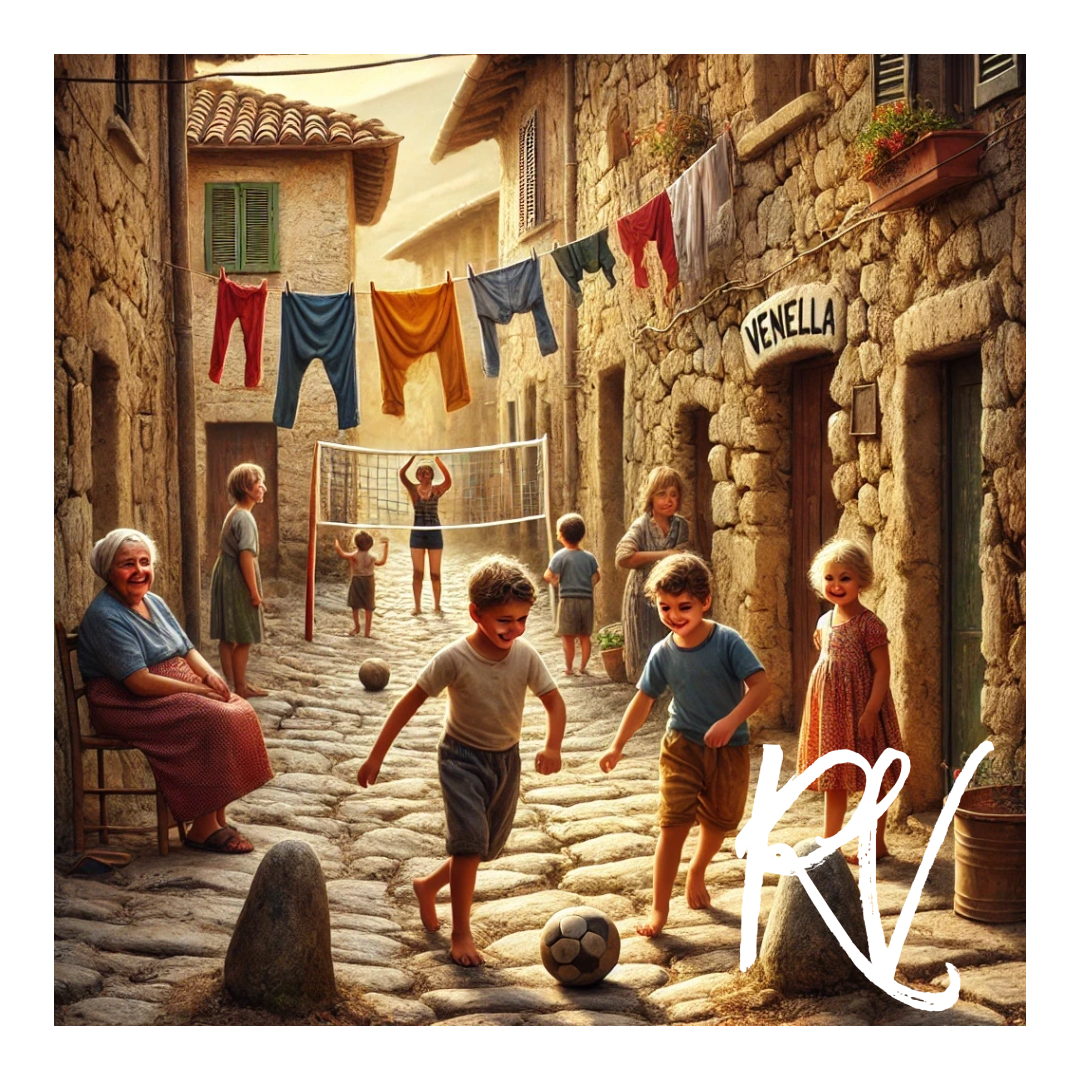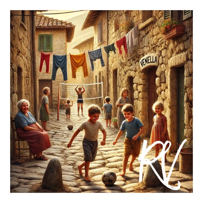Nelle cittadine della conurbazione casertana, al ridosso dei centri storici, i cosiddetti vicoli, o meglio “venelle”, fino a buona parte degli anni 90′ , erano popolati da gruppi di bambini che scendevano ad una certa ora, per buona parte del pomeriggio, a giocare in gruppo. Ogni “venella” aveva i suoi irriducibili e per i ragazzi era quasi scontato giocare a calcio, tutto sommato bastava dotarsi solo di un pallone (indimenticabile il “Super Santos” o anche il “Super Tele”, quest’ultimo capace di traiettore impossibili). Non importava quanto fossi bravo: le formazioni le decideva chi portava il pallone. I più scarsi o i più piccoli finivano a fare i portieri, con la porta delimitata solitamente da due sassi, mentre l’altezza era stabilita “a fantasia”. Spesso la “venella” veniva condivisa con le “femminucce”, impegnate a giocare a pallavolo o a palla avvelenata, una convivenza tutt’altro che facile, ma forzata e mal digerita da entrambe le parti, èer cui non mancavano i dispettucci reciproci.
