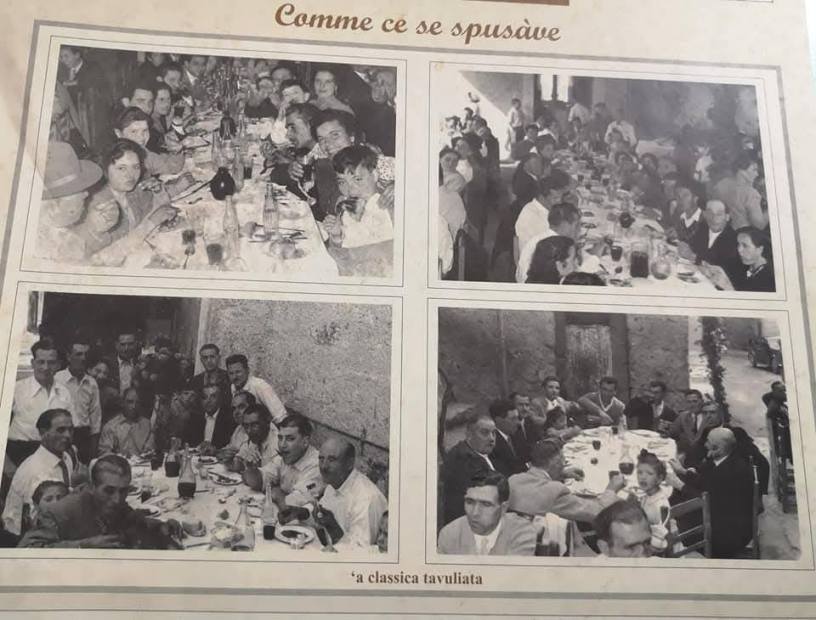 L’ultima immagine, che ritrae il banchetto, evidenzia un’atmosfera conviviale e decorazioni semplici ma curate, rappresentative di un’epoca in cui l’essenzialità aveva un valore.