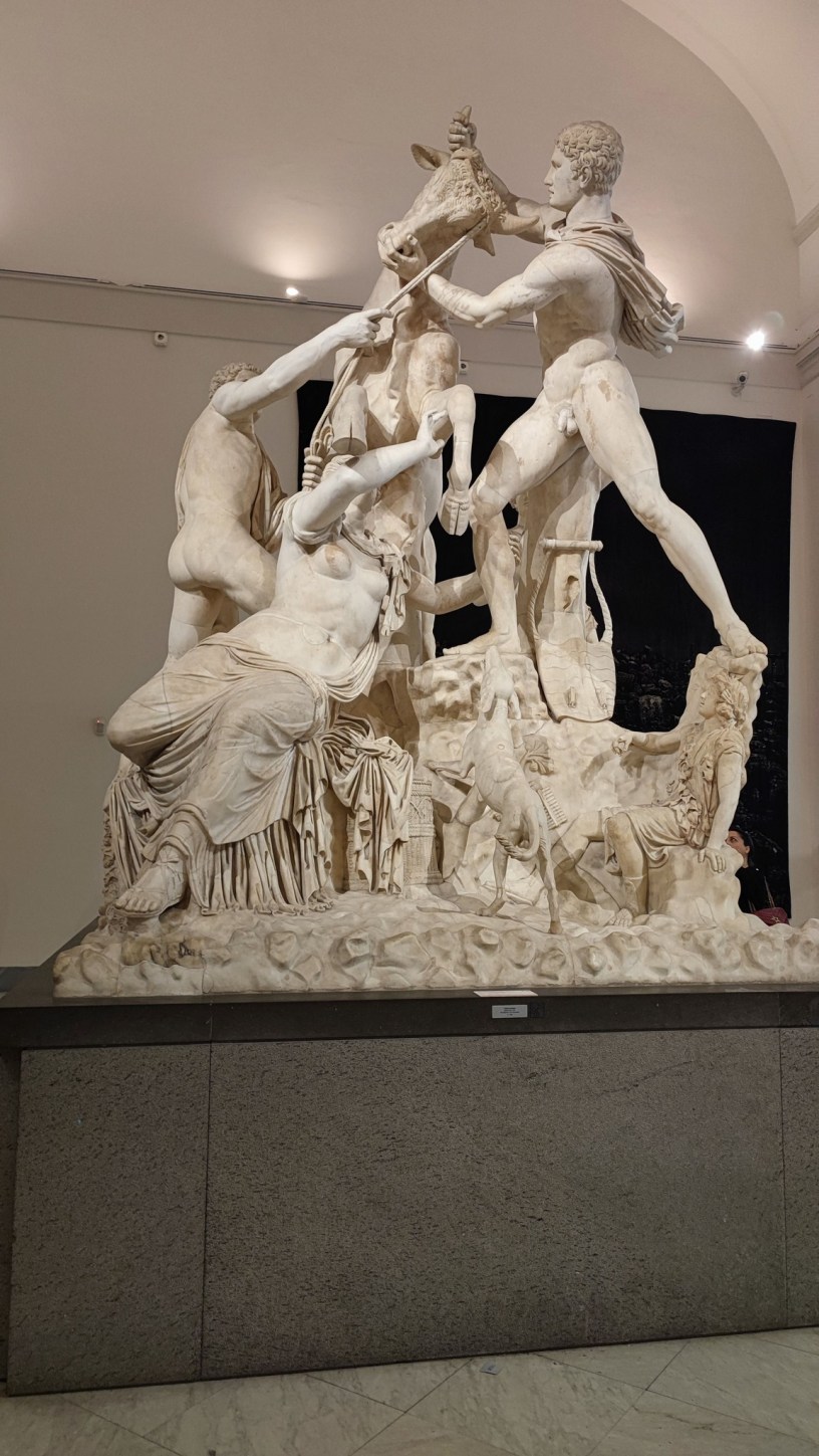 𝐈𝐥 𝐓𝐨𝐫𝐨 𝐅𝐚𝐫𝐧𝐞𝐬𝐞 è un’imponente scultura ellenistica (circa 160-150 a.C.), conservata al 𝐌𝐮𝐬𝐞𝐨 𝐀𝐫𝐜𝐡𝐞𝐨𝐥𝐨𝐠𝐢𝐜𝐨 𝐍𝐚𝐳𝐢𝐨𝐧𝐚𝐥𝐞 𝐝𝐢 𝐍𝐚𝐩𝐨𝐥𝐢. Probabilmente una copia romana severiana (190-210 d.C.) di un originale greco, rappresenta il supplizio di Dirce, punita dai fratelli Anfione e Zeto legandola a un toro selvaggio. Rinvenuto nelle Terme di Caracalla a Roma, il gruppo scultoreo entrò nella Collezione Farnese prima di essere trasferito a Napoli. Celebre per il dinamismo e il realismo della composizione, il gruppo scultoreo narra la punizione della ninfa Dirce, colpevole di aver maltrattato Antiope, la madre di Anfione e Zeto. I due fratelli la legano a un toro selvaggio affinché venga trascinata e uccisa.
