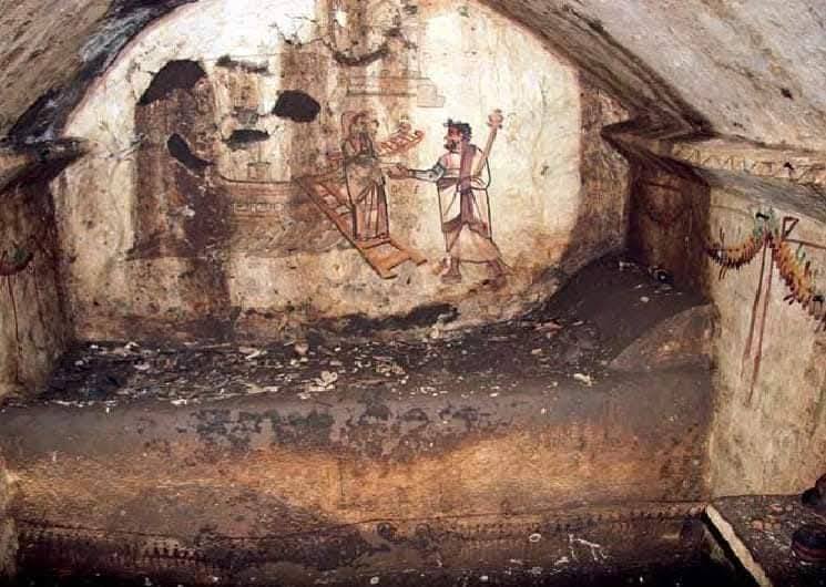 Sulle pareti, il racconto di un ultimo viaggio: Stallia, la defunta, attraversa il fiume dellโAde guidata da una divinitร degli Inferi, simbolo del passaggio nell’aldilร . Tra gli oggetti ritrovati, raffinati contenitori in alabastro per profumi e unguenti, segno di un rito antico che univa corpo e spirito nell’eternitร .