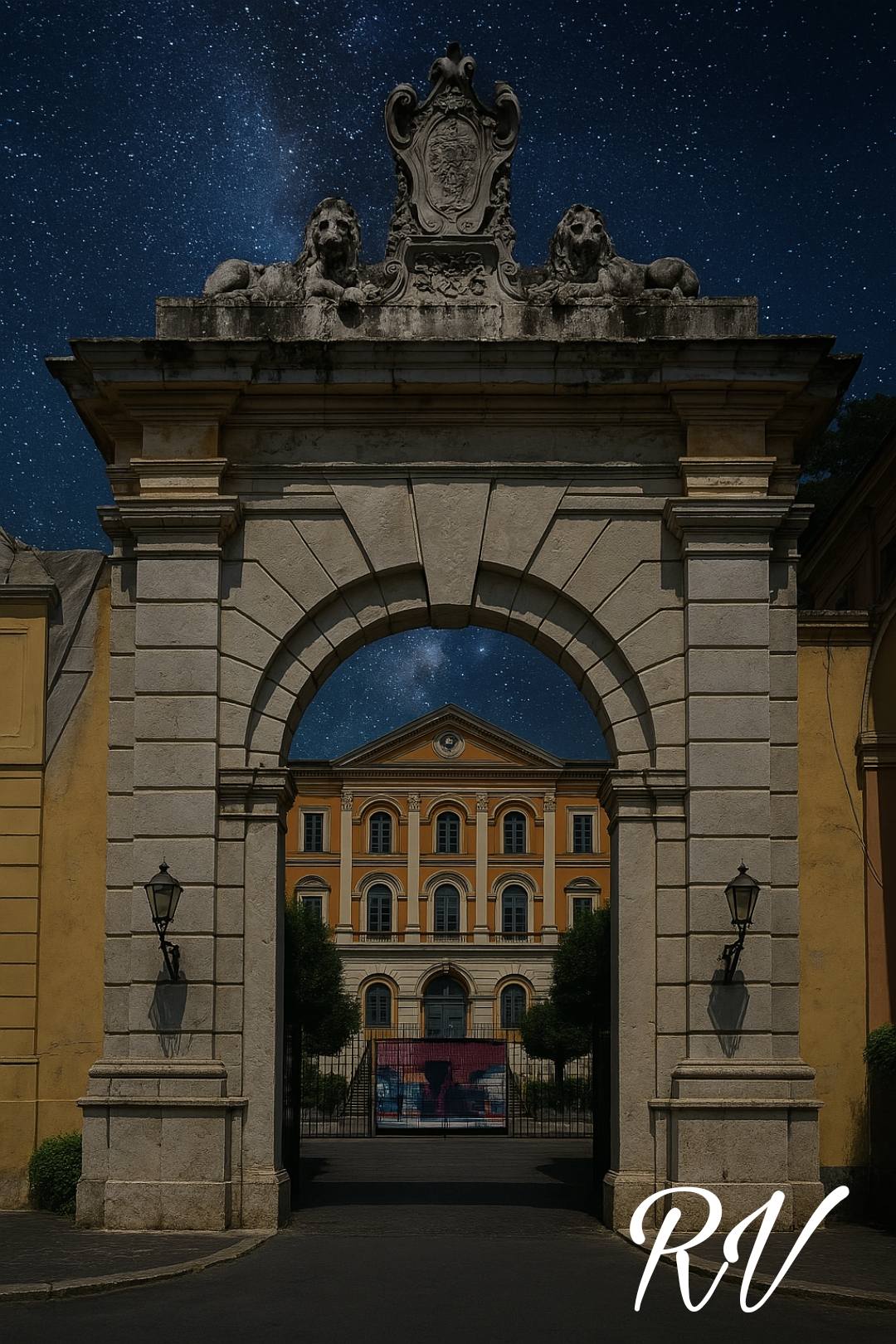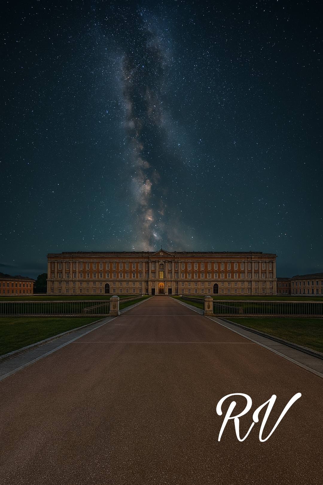 L’intelligenza artificiale ha saputo donarci una prospettiva onirica e suggestiva di scorci ben noti della conurbazione casertana, elevandoli sotto una coltre di stelle che raramente il nostro sguardo cittadino può ammirare con tale nitidezza. Palazzi, piazze e monumenti familiari si stagliano ora in un contesto cosmico, dove la familiare illuminazione urbana dialoga con la luce antica e misteriosa delle costellazioni.