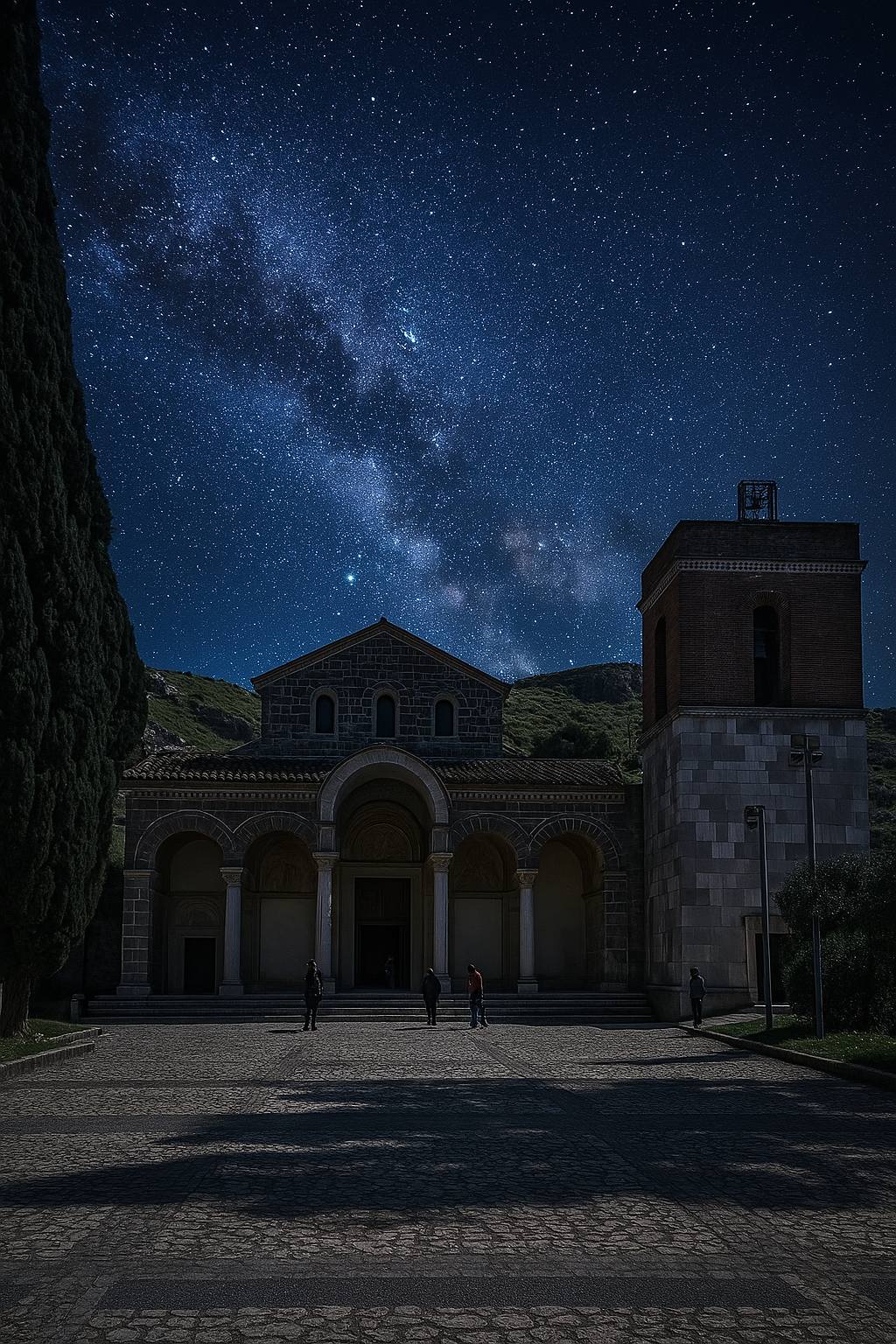 Quest’operazione di rielaborazione digitale ci offre una visione inedita, quasi un invito a riscoprire la bellezza dei nostri luoghi quotidiani sotto una luce diversa. Tuttavia, come giustamente osservi, la magia catturata dall’IA è frutto di una manipolazione sapiente. Nella realtà, immortalare tali angolazioni con una simile volta celeste richiederebbe una dedizione quasi certosina: scegliere il momento propizio, attendere le condizioni atmosferiche ideali, trovare la prospettiva perfetta e, soprattutto, dedicare ore all’esposizione per catturare la debole luce delle stelle.