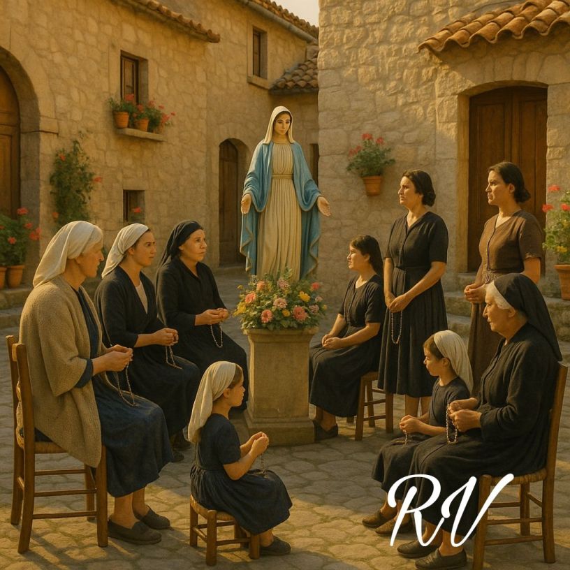 Anni fa, nel mese di maggio, era consuetudine, che fortunatamente negli ultimi anni si sta rinnovando, ritrovarsi ogni pomeriggio per recitare insieme il Rosario. Di solito ci si incontrava nello spiazzo delle grandi case di corte che popolavano il centro storico dei paesi della conurbazione casertana. In una realtà allora prevalentemente rurale, a guidare la preghiera erano soprattutto le donne, ciascuna con la propria sedia o sgabello al seguito.