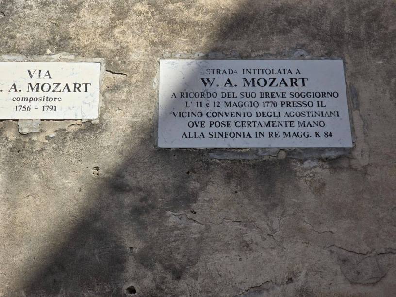 Tra i vicoli di Sessa Aurunca, un angolo della Campania ricco di storia e suggestione, una targa ci racconta un episodio affascinante: Wolfgang Amadeus Mozart, il genio di Salisburgo, soggiornรฒ qui lโ11 e 12 maggio 1770, presso il convento degli Agostiniani.