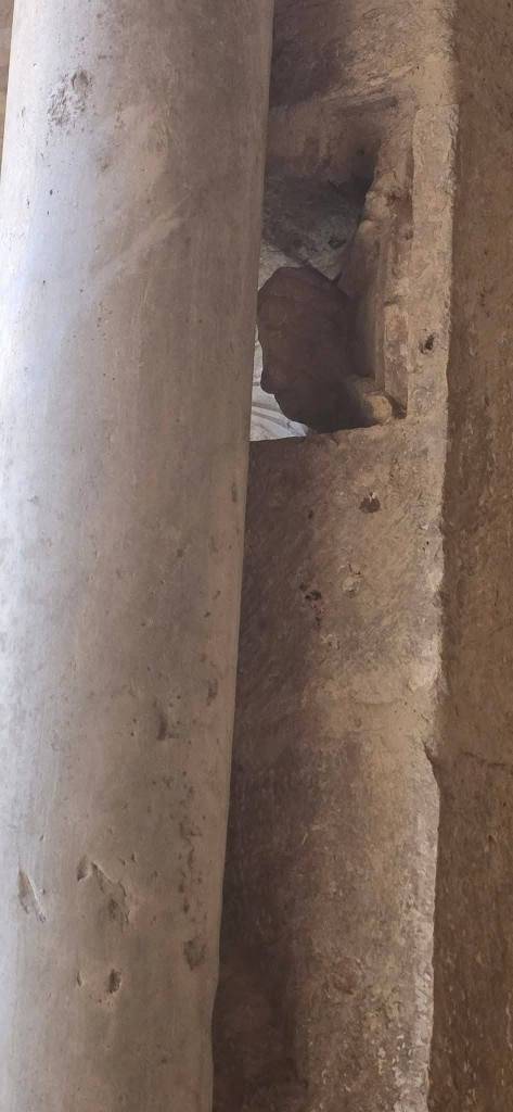 Non è tutto: sul lato destro del muro, più in alto, si intravede un volto femminile, visibile solo da una certa angolazione. Secondo i conoscitori del luogo, si tratterebbe di 𝐂𝐨𝐬𝐭𝐚𝐧𝐳𝐚 𝐝’𝐀𝐥𝐭𝐚𝐯𝐢𝐥𝐥𝐚, madre dell’imperatore. Una presenza scolpita nella pietra come a voler fissare nel tempo un legame che la sorte spezzò troppo presto.