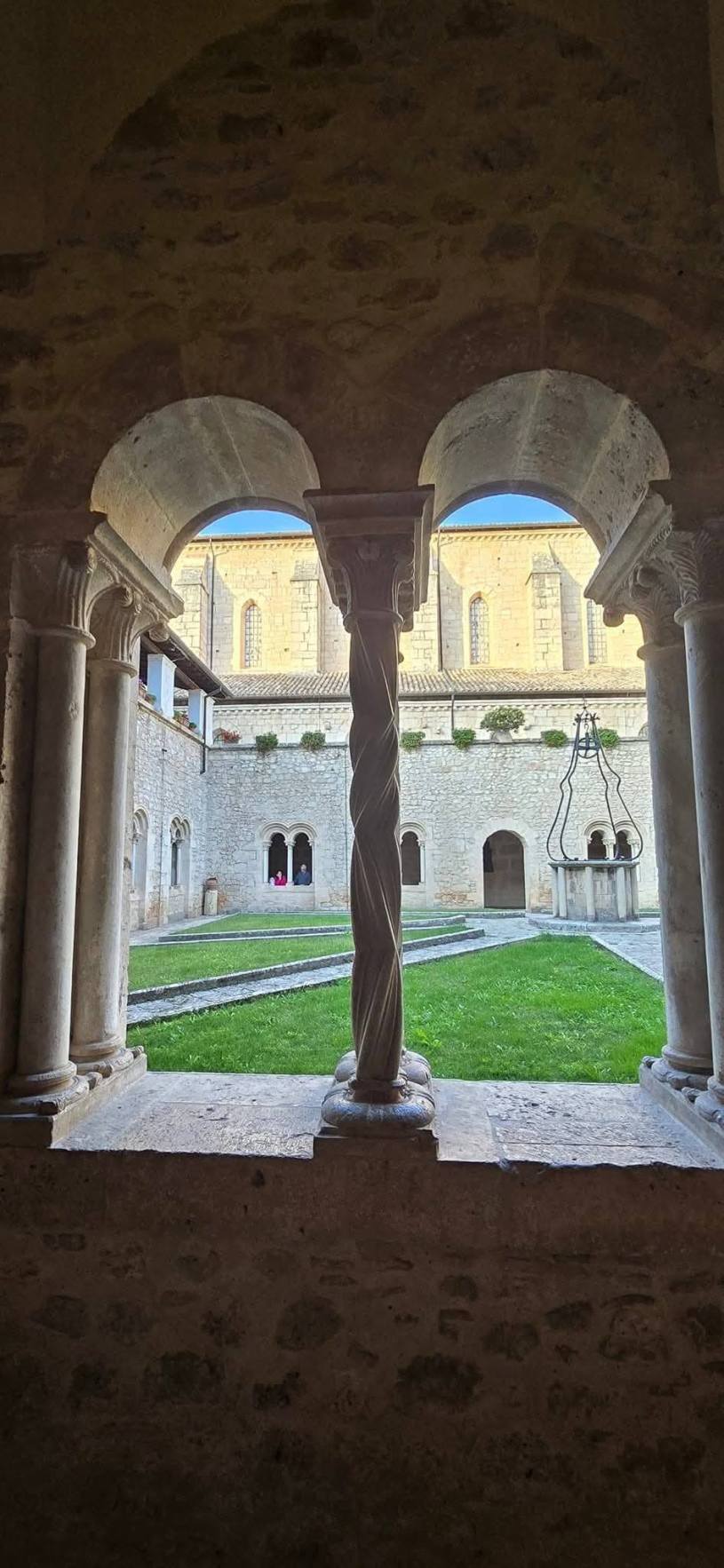 Nonostante le tre scomuniche papali ricevute nel corso della sua vita, spesso attribuite alla sua presunta vicinanza a pratiche considerate esoteriche, il legame tra Federico II e l’abbazia non venne mai meno. A testimonianza di questo rapporto, il sovrano fece scolpire nella bifora del chiostro un messaggio simbolico, non immediatamente evidente. Nei capitelli della bifora sono raffigurati tre volti: quello dell’imperatore, affiancato da due figure fondamentali per la sua formazione, 𝐥’𝐚𝐛𝐚𝐭𝐞 𝐆𝐢𝐨𝐯𝐚𝐧𝐧𝐢 𝐞 𝐏𝐢𝐞𝐫 𝐝𝐞𝐥𝐥𝐞 𝐕𝐢𝐠𝐧𝐞.
