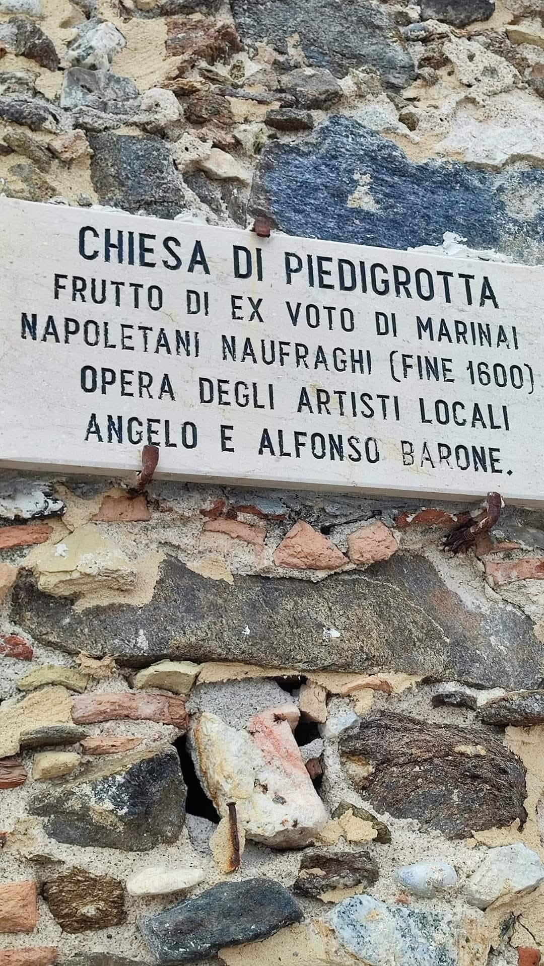 Nel momento del pericolo, i marinai fecero voto a Maria Santissima di Piedigrotta, il cui quadro si trovava nella cabina del comandante, promettendo che, in caso di salvezza, avrebbero eretto in suo onore una cappella votiva proprio nel punto in cui fossero approdati.