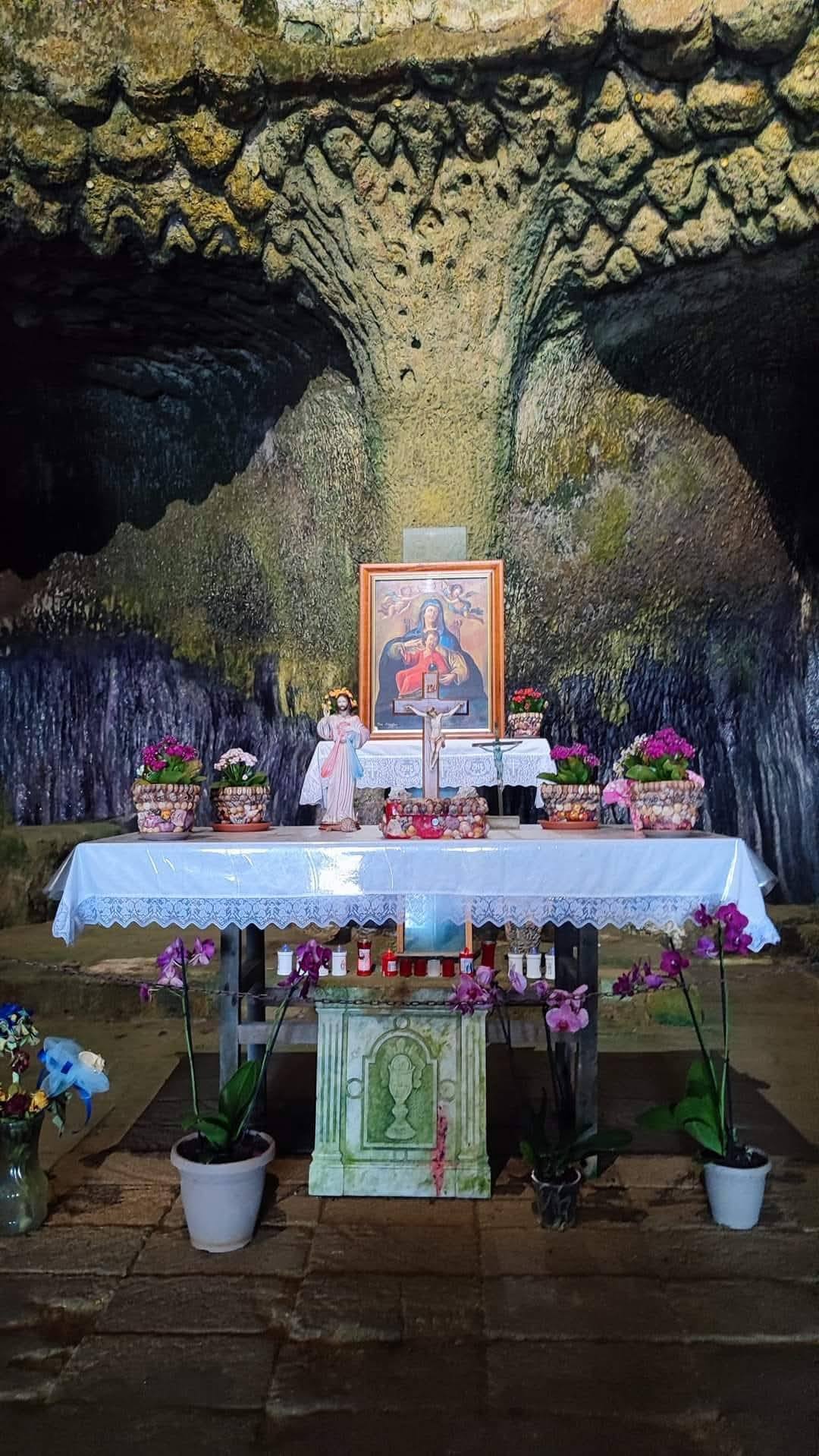 Memori della promessa fatta, i naufraghi scavarono nella roccia una cavitร dove deposero lโimmagine sacra, con lโintenzione di tornare per realizzare la cappella votiva.